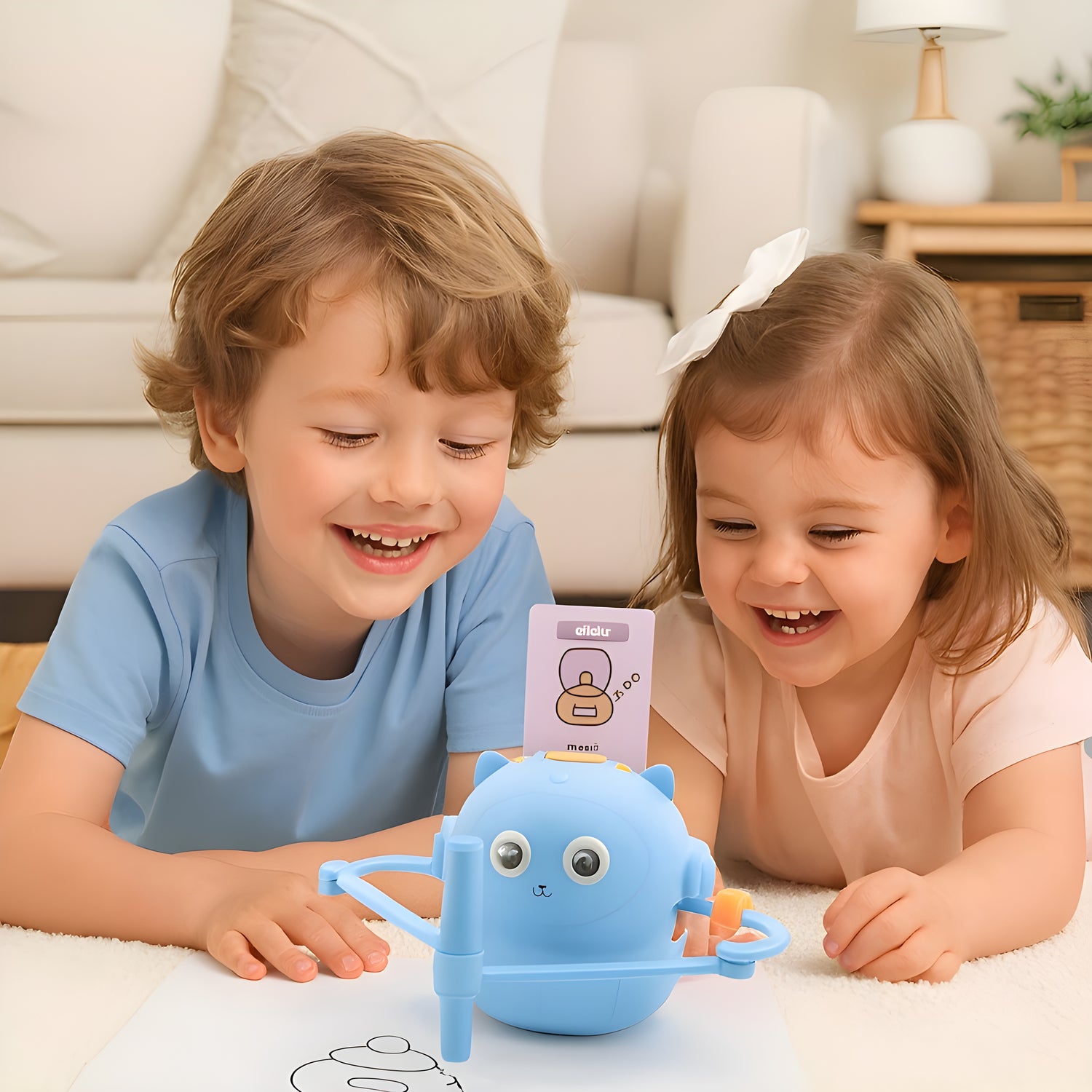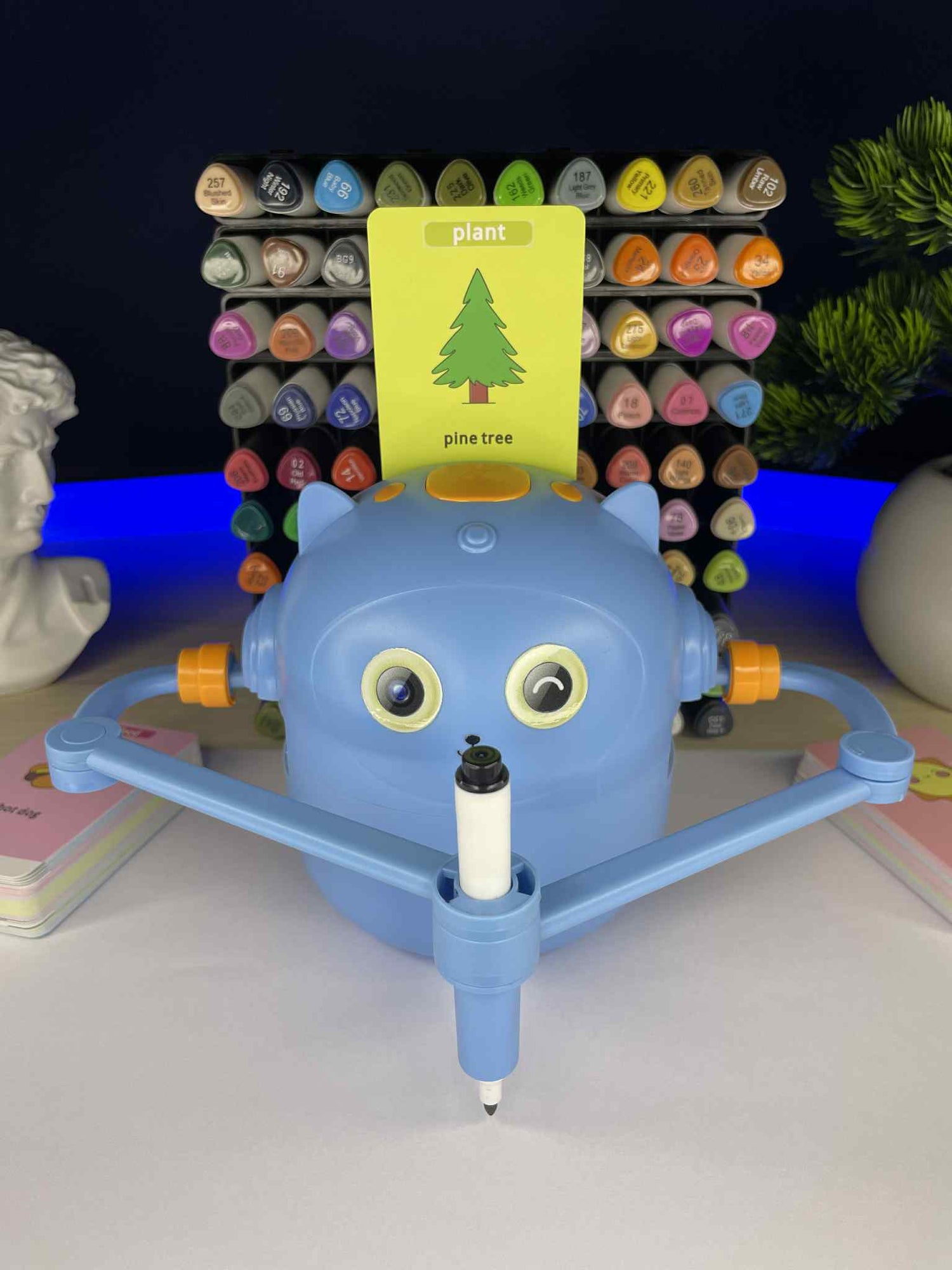 Reaguje na włożone karty i samodzielnie rysuje, a ruchomy mechanizm dodatkowo zaciekawia dzieci. Dzięki temu zabawa staje się dynamiczna i pełna niespodzianek.